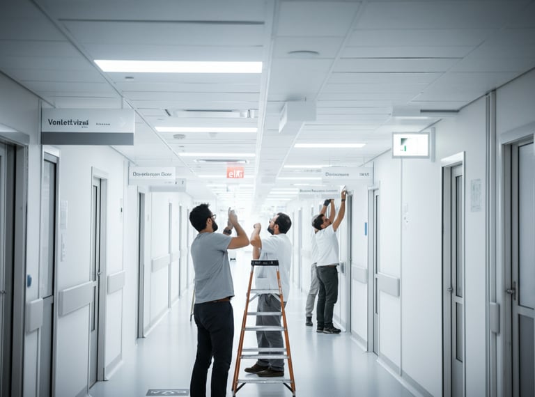 A Érgon é especialista em sinalização hospitalar completa, oferecendo uma comunicação visual clara e eficaz para hospitais, clínicas e laboratórios. Nossos projetos personalizados facilitam a orientação de pacientes, visitantes e profissionais de saúde, garantindo que cada ambiente seja identificado conforme as normas regulamentadoras.